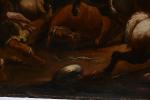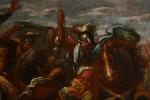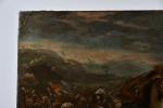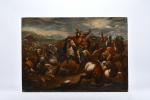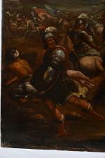 ECOLE ITALIENNE du XVIIème siècle, suiveur de Jacques COURTOIS. "La conversion de Saint-Paul /Josué arrêtant le soleil", toile, porte une signature "Salvatore Rosa" en bas à droite. 90,5 x 130 cm. Sans cadre