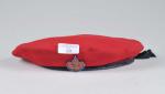 BERET rouge avec insigne émaillé thaïs, devise " En, avant, calme et droit ". BE