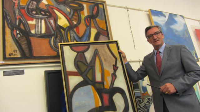 Ces deux tableaux du peintre Jean-Michel Atlan, décédé en 1960, sont à vendre aux enchères, mercredi, à Angers. Jean-Michel Atlan, considéré par le critique d’art Bertrand Dorival, comme « le plus visionnaire des abstraits », a rejoint le mouvement CoBra en 1946. Les deux tableaux en vente appartenaient à Maryse et Maurice Vendre, un couple d’industriels choletais.