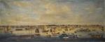 The painting depicts the maritime traffic as seen from the Hong 'factories' (trading posts) in Canton across the Pearl River to Henan (Honam).