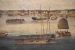 Port scenes were often part of a set of four or six paintings representing Canton, Macao, Whampoa, Bocca Tigris, or even Hong Kong and Shanghai.