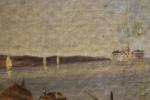 Ecole Anglo-Chinoise (China Trade Painting), vers 1840 « Vue du Front de Mer à Honam » Huile...