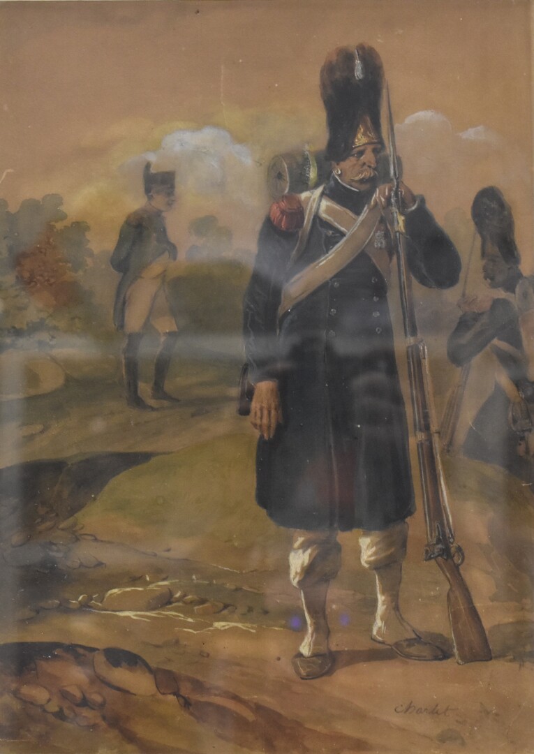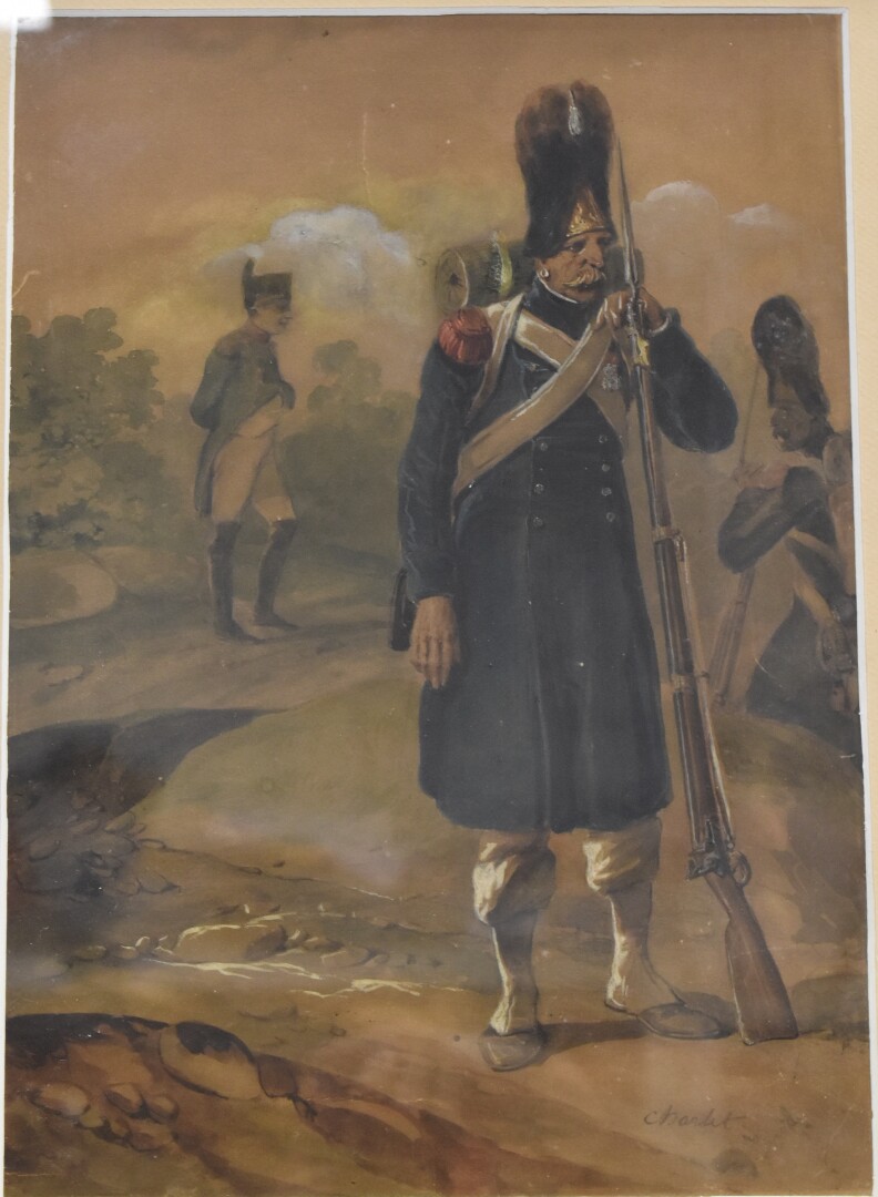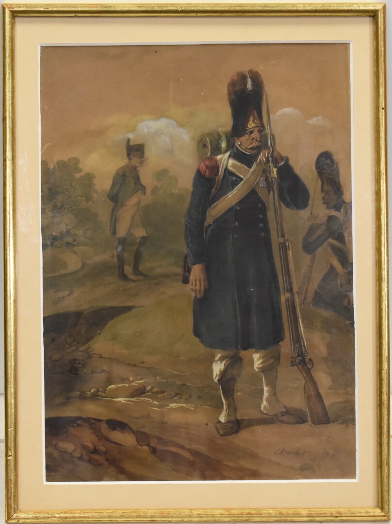 CHARLET (N.T) "Napoléon et sa garde" crayon, aquarelle et rehauts de gouache, 36x25,5