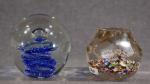 Boule presse-papier taillée en forme "diamant" et boule presse papier à décor de serpentin bleu.