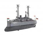 et une coque de bateau à 3 cheminées, L. 41 cm.