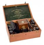 Obturateur stéréoscopique E.Suter N°17425 avec objectifs et bouchon d'objectif dans un joli coffret intérieur soie...