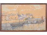 Léon DUVAL-GOZLAN (1853-1941) "Port Haliguen (Quiberon)" Dessin au crayon gouaché, signé en bas à droite. 29x49 cm.
