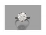 Bague en platine sertie d'un diamant coussin demi taille. Poids du diamant : 4,94 cts. Tour de doigt : 52 - Poids brut : 5,35 g.