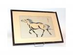 Estampe japonaise "Cheval, calligraphie sur papier, velours accidenté et broderie sur soie rouge.