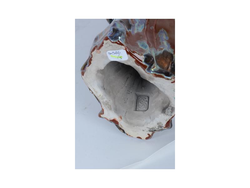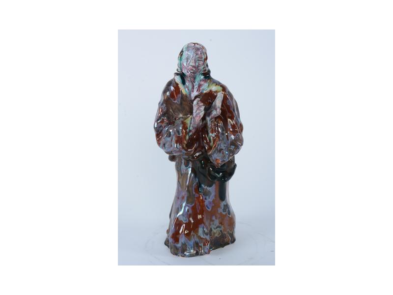 Gabriel Loire (1904-1996)"Femme implorant"Sculpture en grès émaillée polychrome à lustre métallique.(petit éclat à la base). 30 cm.