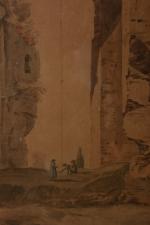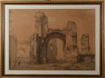 Ecole française fin XVIIIe - début XIXe siècle Les thermes de Caracalla Aquarelle, encre et lavis d'encre. 49 x 69 cm.