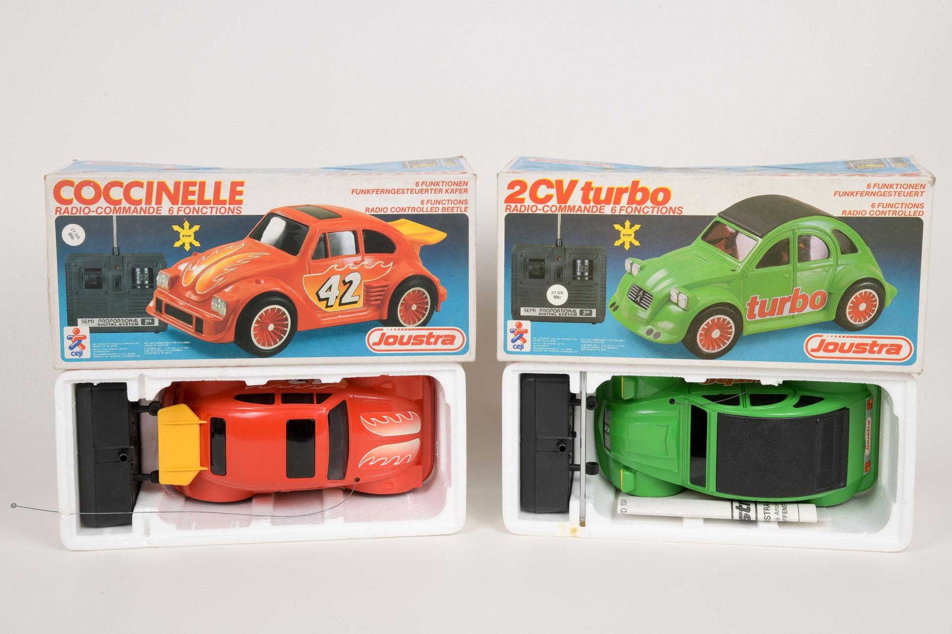 Joustra CEJI, radio-commande, 2CV turbo et Coccinelle, 6 fonctions téléguidées réf. 5089 et 5088. Bel état, en boîte.