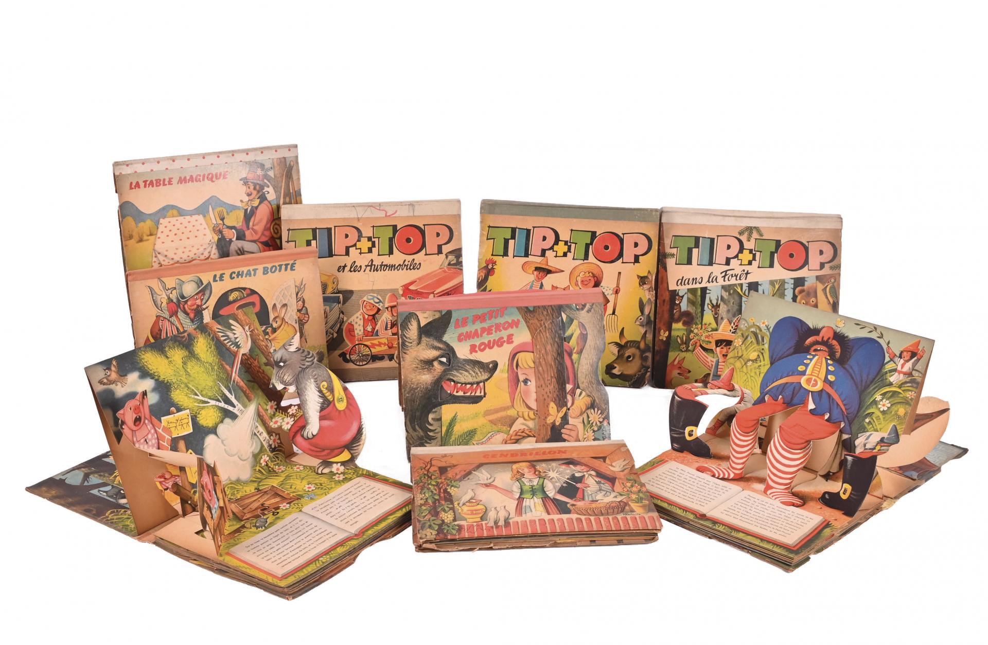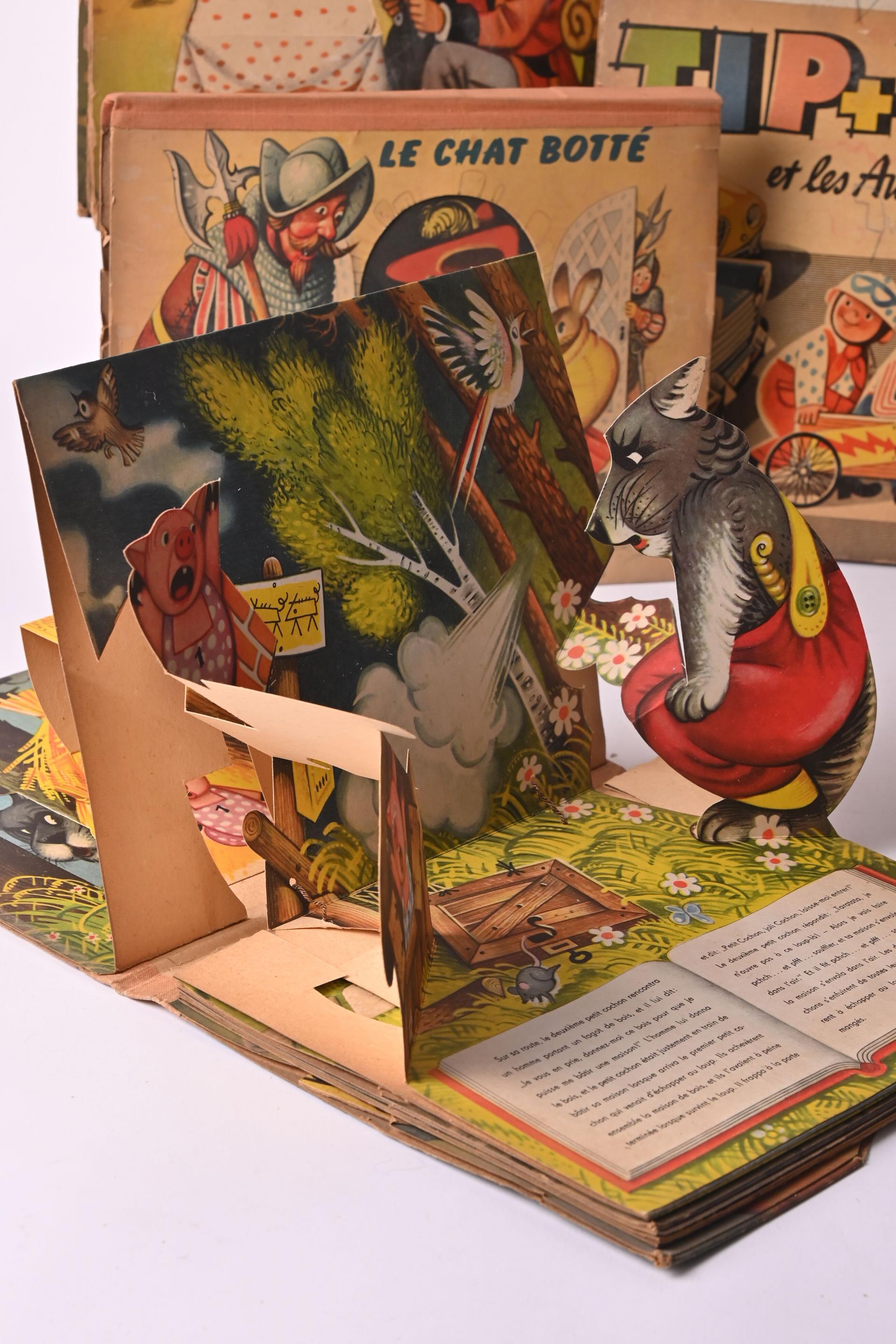 Neuf livres Pop up à système dont six des Edition Delduca vers1960 et trois Tip et Top.