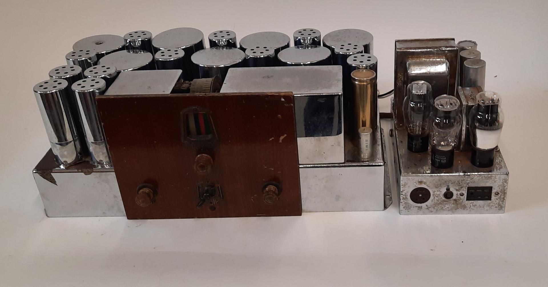 Scott Radio Labs All Wave Poste à lampe en métal chromé, en deux parties, avec photocopie de la notice.
