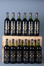 1 CBO, 12 bouteilles, Pomerol, Château du Domaine de l'Eglise 1981. 3 HE et 1 E.