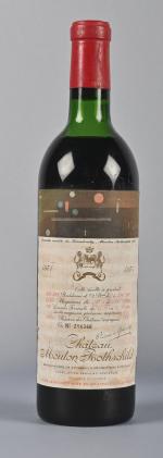 1 bouteille, Pauillac, Château Mouton Rothschild, 1er Grand Cru Classé, 1971. HE. Étiquette sale et légèrement abimée.