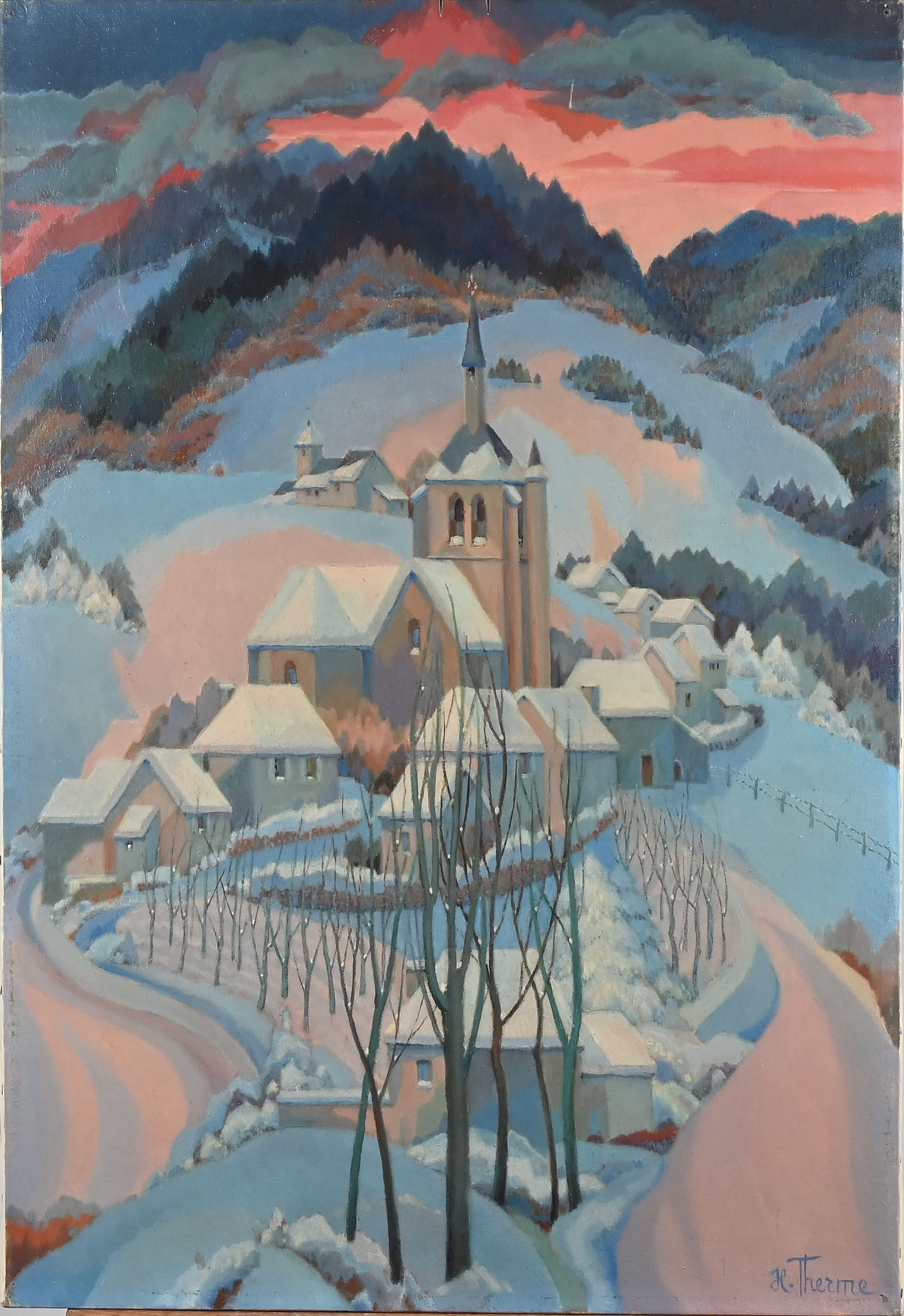 Henri Therme (1900-1973), "Champagne forestière" huile sur toile, signée en bas à droite, titrée au dos, 73 x 50 cm (trace). Provenance : fonds d'atelier Henri Therme (1900-1973)