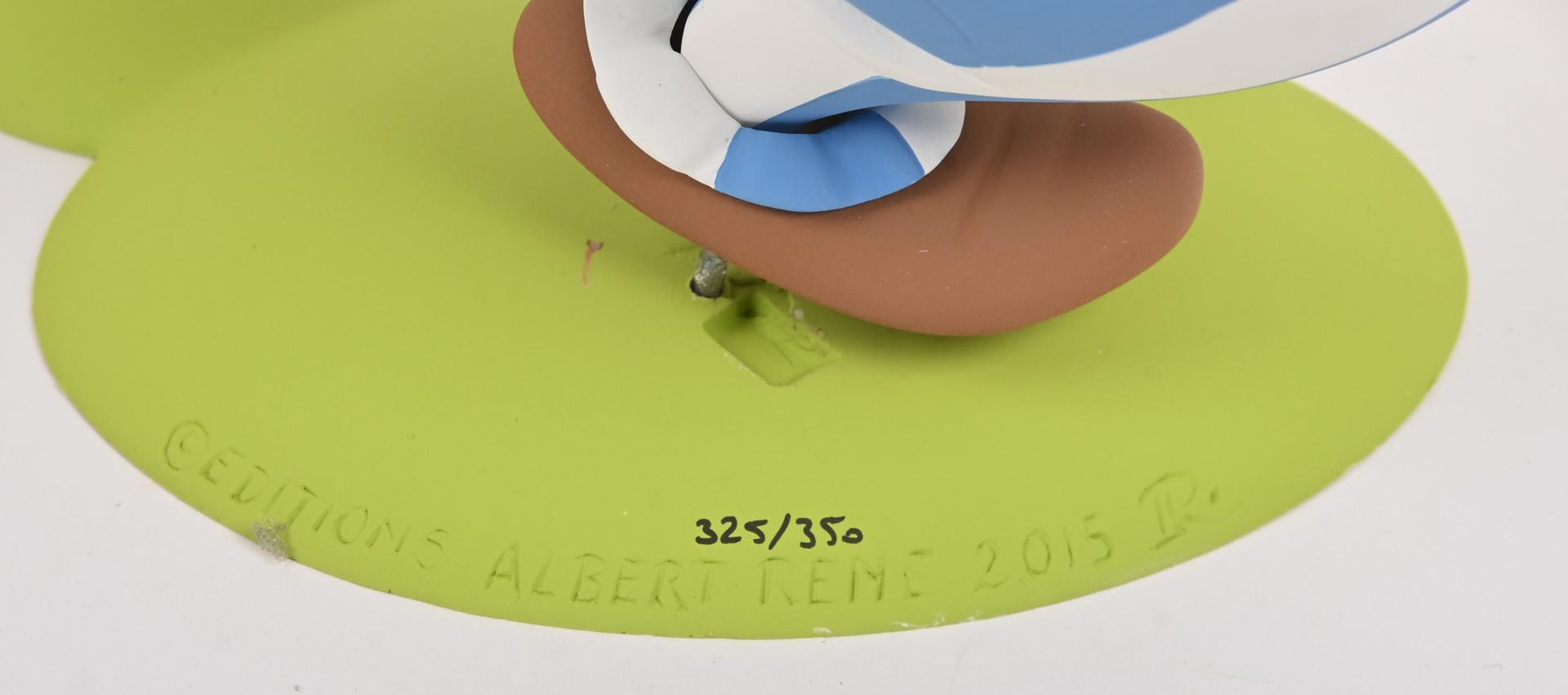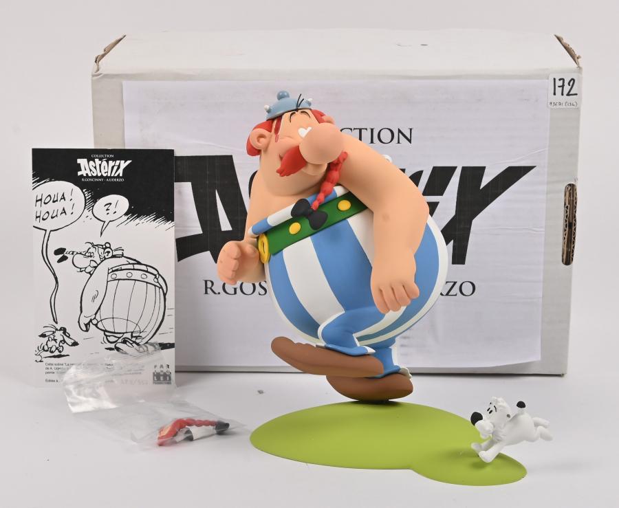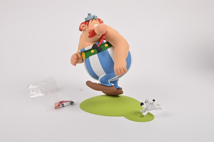 "Les aventures d'Astérix", Obélix et Idefix, figurine en composition, n°325/350, ed. Albert René 2015, dans sa boîte avec certificat (acc. à une tresse et aux oreilles d'Idefix, présents à refixer).