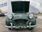 La Galerie de Chartres est heureuse de vous proposer cette Triumph TR2 qui se présente dans l'élégante tonalité British Racing Green. Elle appartient dans les années soixante dix, au champion motocycliste Filliol, avant de rejoindre la collection d'un autre passionné de deux roues. Dans les mêmes mains depuis près de 40 ans, le véhicule a connu une restauration intégrale de qualité, lors de laquelle la tôle est mise a nu et le châssis est passé au marbre. L'intégralité de la mécanique, l'intérieur et l'électricité sont refaits dans les règles de l'art. Si quelques traces d'usage sont visibles, cette restauration ancienne présente aujourd'hui une belle patine, et témoigne de la qualité du travail réalisé. La TR2 a parcouru depuis lors plus de 20.000km, au cours desquels elle a fait la démonstration de sa robustesse, avant de connaître une période d'arrêt. Une révision mécanique sera nécessaire, pour pouvoir à nouveau savourer la conduite ce beau Roadster, éligible à de nombreux événements incontournables (Tour Auto, Rallye historique de Monte-Carlo, Mille Miglia).
