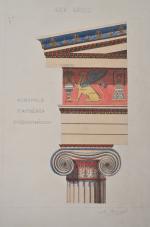Deux albums de planches à l'encre certaines aquarellées de l'élève Paul Renard, le premier de 45 planches (46 x 39 cm) et le second de 85 planches (50 x 40 cm).