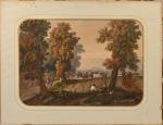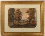 Ecole française XIXème Paysage de montagne avec troupeau Grande aquarelle signée J. Bourgeois, époque Romantique. 47x67 cm. Encadrement d'époque.