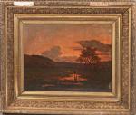 David SUTTER (1811-1880) Chasseur au soleil couchant Huile sur panneau signée en bas à gauche. 33 x 40 cm.