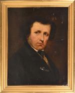 École FRANCAISE vers 1840 Portrait d'homme à l'habit brun Toile. Manques et accidents 58 x 44,5 cm. Expert : René Millet
