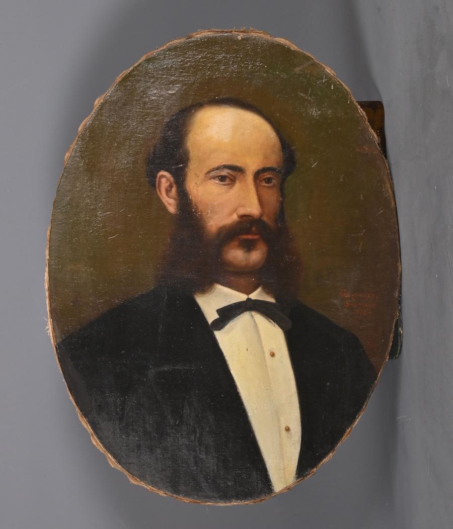 Satiago Guyonnet (École du XIXe) Portrait d'homme, 1877. Huile sur toile à vue ovale. 59 x 44 cm.