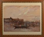 École fin XIXème - début XXe siècle. Venise Huile sur papier. Vue : 38 x 53 cm.