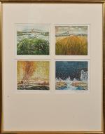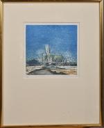 Ecole du XXe siècle Vues de la Cathédrale de Chartres Cinq aquatintes dans deux encadrements justifiés et signée "Blichest" ?. Vue : 22 x 21 cm et 13 x 13,5 cm.