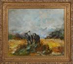 William Marcel CLOCHARD (1894-1990) Deux percherons Huile sur toile signée en bas à gauche. 46 x 56 cm.