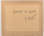 Michel CALVET (1956) Péniches au Somail Gouache, signée en bas à gauche, titrée au dos. 33 x 42 cm.