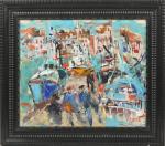 Michel CALVET (1956) Marins sur le port Aquarelle et gouache signée en bas à droite. Vue : 40 x 48,5 cm.