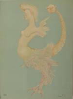 Léonor FINI (1908-1996) Deux lithographies en couleur : - La naissance d'Isis, contresignée au crayon et numérotée 68/175. 69x52 cm. - Visage de femme, contresignée au crayon, épreuve d'artiste. 41x32 cm.