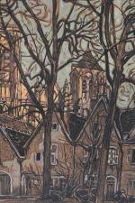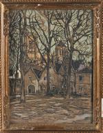 Perigaud (Ecole du XXe siècle) La Cathédrale de Bourges, 1911 Dessin gouaché signé en bas à gauche, situé et daté. 48 x 35 cm.