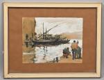 Gustave VIDAL (1895-1966) Pêcheurs au bord de mer Encre gouachée, signée en bas à droite. 19 x 25 cm.