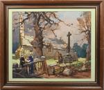 Henry VOLLET (1861-1945) Église bretonne avec personnages Aquarelle gouachée signée en bas à droite. 44 x 52,5 cm à vue.
