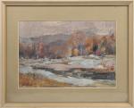 Klano Erbenova (École du XXe) Bord de rivière en automne, 1926 Huile sur papier signé en bas à gauche. Porte une étiquette datée et titrée au dos. Vue : 33,5 x 48,5 cm.