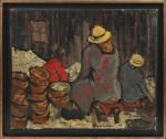 Jef FRIBOULET (1919-2003) Les trieuses de galet, 1959 Huile sur toile, signée en bas à droite, datée, titrée et signée au dos. 50 x 60,5 cm.