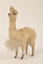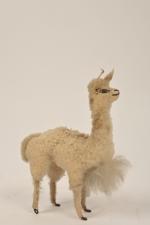 Lama en cuir et laine de mouton. H. 17,5 cm.