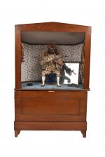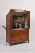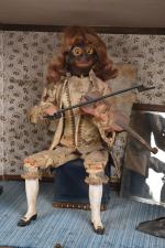 Beau modèle en état d'origine avec ses habits (quelques usures), six airs. Nécessite une révision pour le singe violoniste et le mécanisme d'orgue à anche.