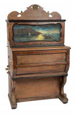 Piano mécanique Louis Cécovi à Clermont-Ferrand, 10 airs, avec son fronton, 39 marteaux, cadre métallique. Fonctionne, à accorder, bon état général. Largeur 94 cm.