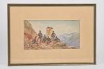 Pierre COMBA (1859-1934) La halte des chasseurs alpin Aquarelle signé en bas à gauche. (Tâches et rousseurs). Vue : 17,4 x 33 cm.