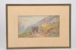 Pierre COMBA (1859-1934) Chasseurs alpins Aquarelle signée en bas à gauche. (Tâches et rousseurs). Vue : 18 x 33,5 cm.
