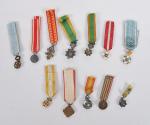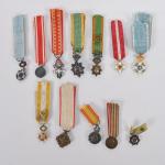 France Lot de 11 décorations miniatures, dont Légion d'honneur, Mérite agricole, Verdun… Rubans.