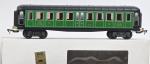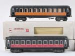 A.S, rame PLM de trois voitures à boggies, toit rond (37 cm) : 1e classe rouge, 2e classe orange et 3e classe verte. En boîte.