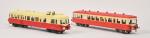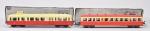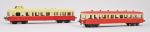 RV Zéro, autorail Picasso X 3800 rouge et crème, électrique trois rails. Bel état, en boîte. 42 cm. On y joint sa remorque à boggies XRADB. 42 cm.