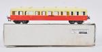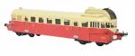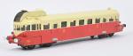 RV Zéro, autorail SNCF XBD 2211, crème et rouge, dépôt de Montluçon, trois rails. 42 cm.