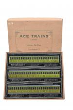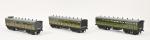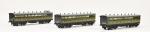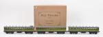 ACE contemporain, rame de trois voitures PO à boggies, vertes, (37 cm) : une mixte Ie/IIe classe et IIIe classe (2 ex.). Bel état, en boîte.