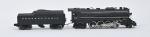 Lionel, locomotive n°736 électrique type 142 noire avec tender charbon Pennsylvania, à deux boggies, l. 52 cm.